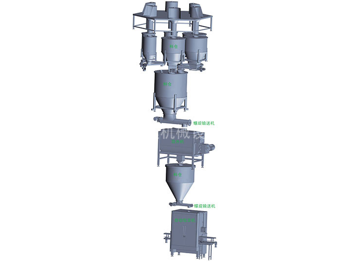 主要用途:该配料系统主要用于多种物料的配料包装输送生产环节。该系统可包括原料上料输送、原料储存、选择配方、自动配料、物料输送、混合拌匀、装袋缝包全过程。根据用户的场地布局和具体要求,可进行差异化设计,满足客户对性价比的要求。