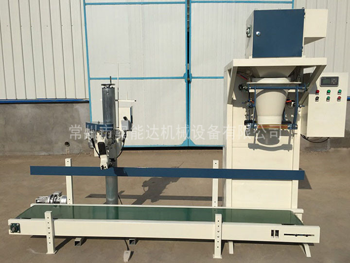 人工上袋,机器自动称重灌装、自动松袋,经输送带传递到缝包机进行缝包、传输。