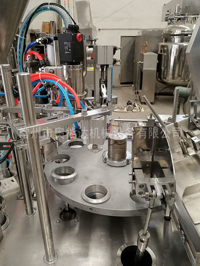 塑料复合软管灌封机主要用于一次传动原理。利用分度机构带动装有夹具的转盘作间歇运动,完成自动灌装及内外加热、封尾、压码、切边、成品退出等一系列功能。灌装计量准确,加热时间稳定、可调、封尾外观漂亮、整齐、牢固、卫生。切边平整。该机设为10个工位,除人工上管外,其它均可自动完成。整机运行平稳可靠,无噪音和其它污染。